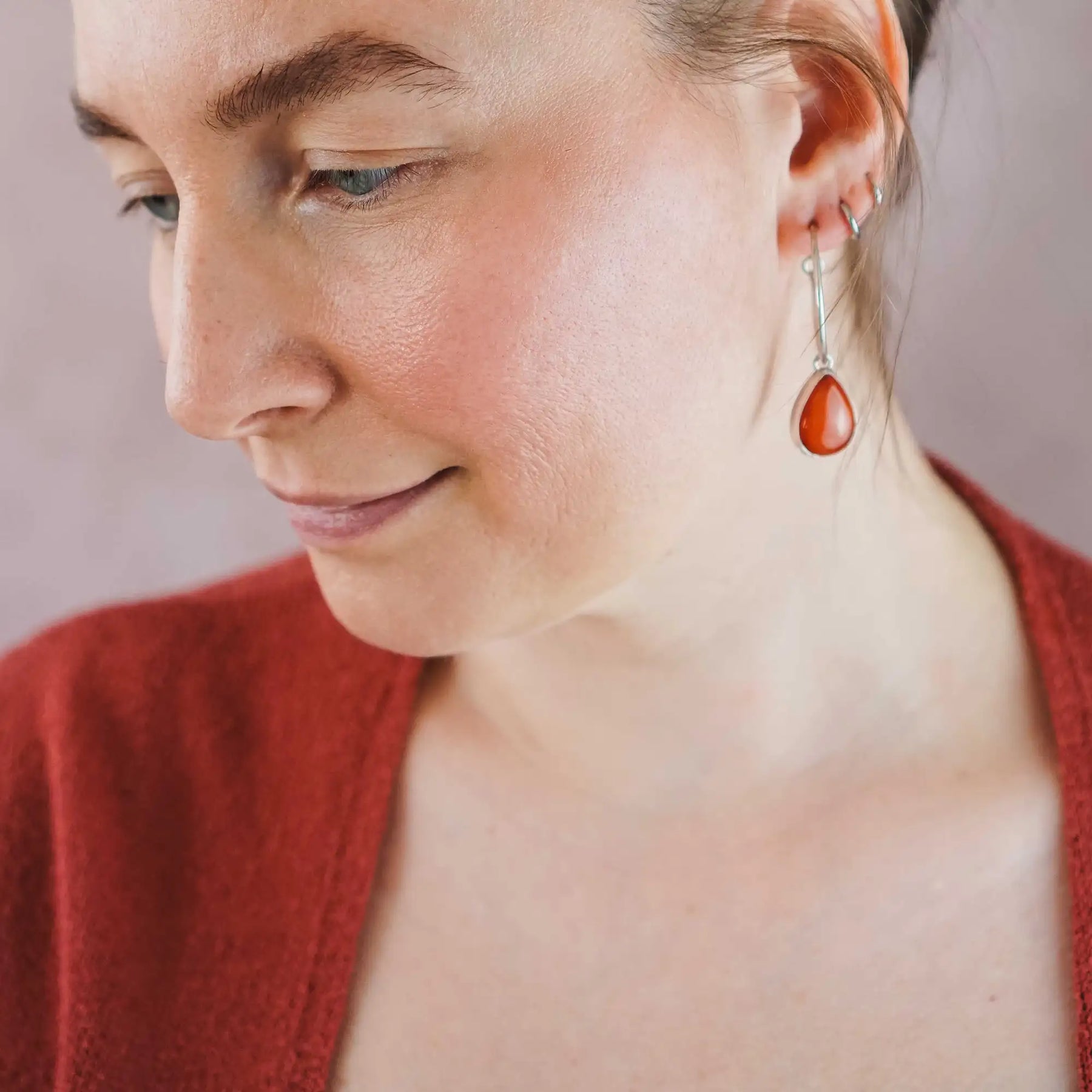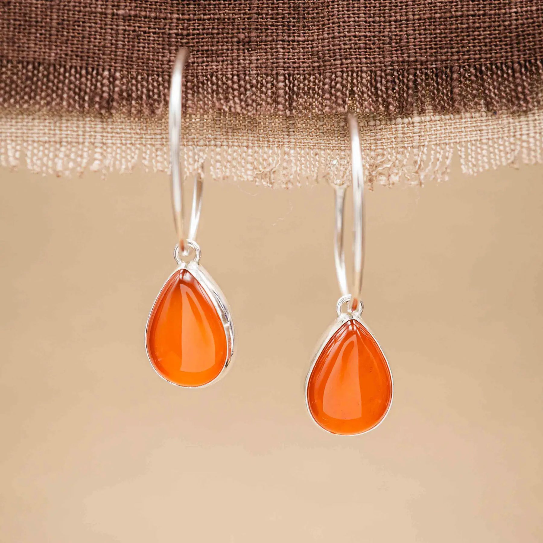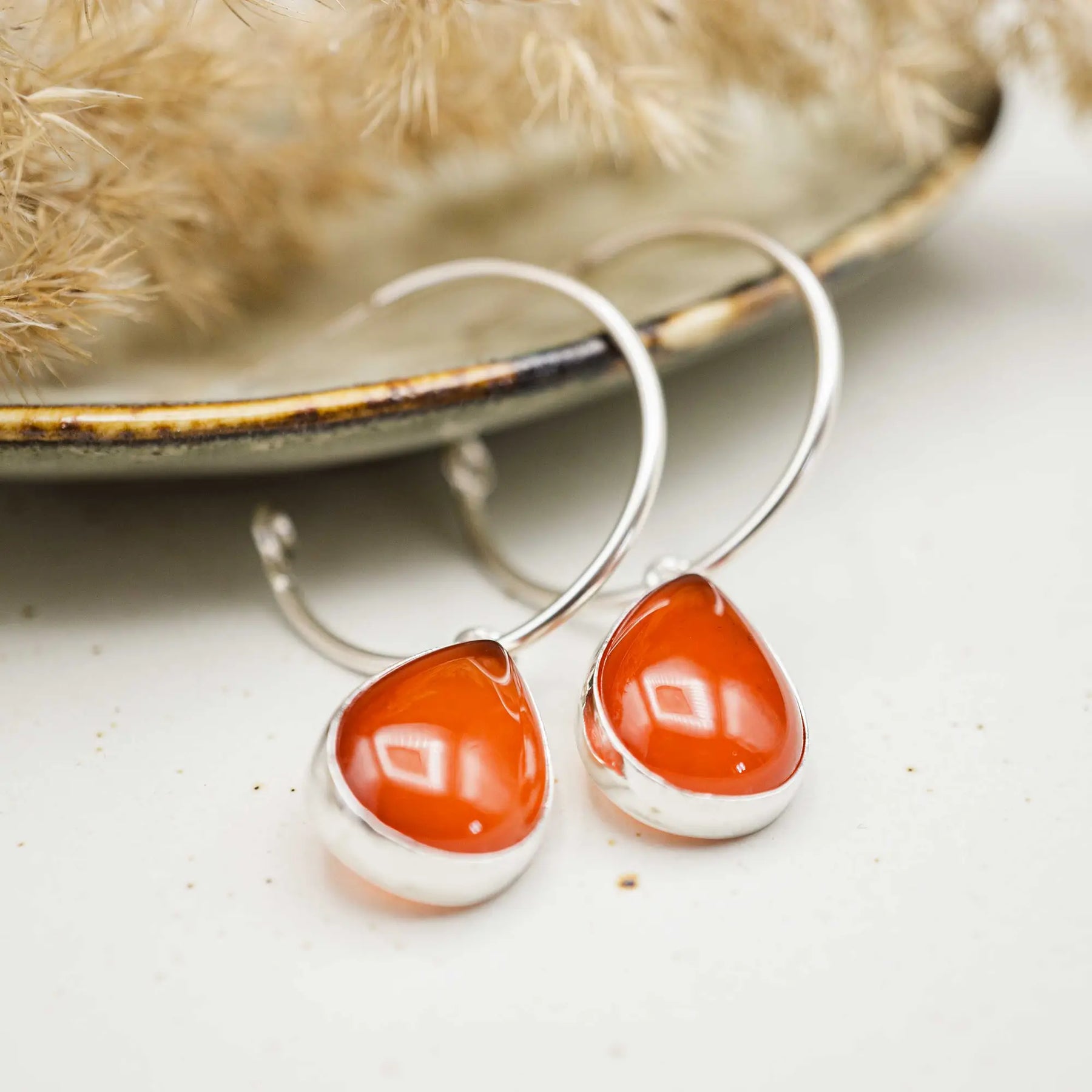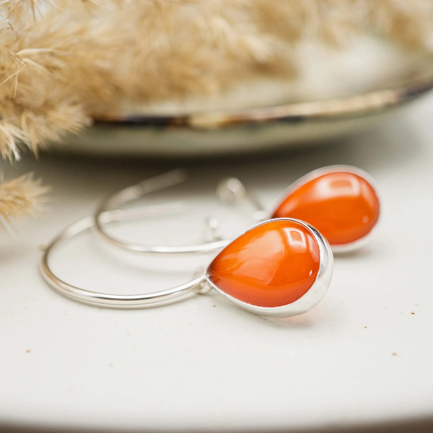 Creolen Silber 925 mit Karneol - Handgefertigte Ohrringe mit Edelstein