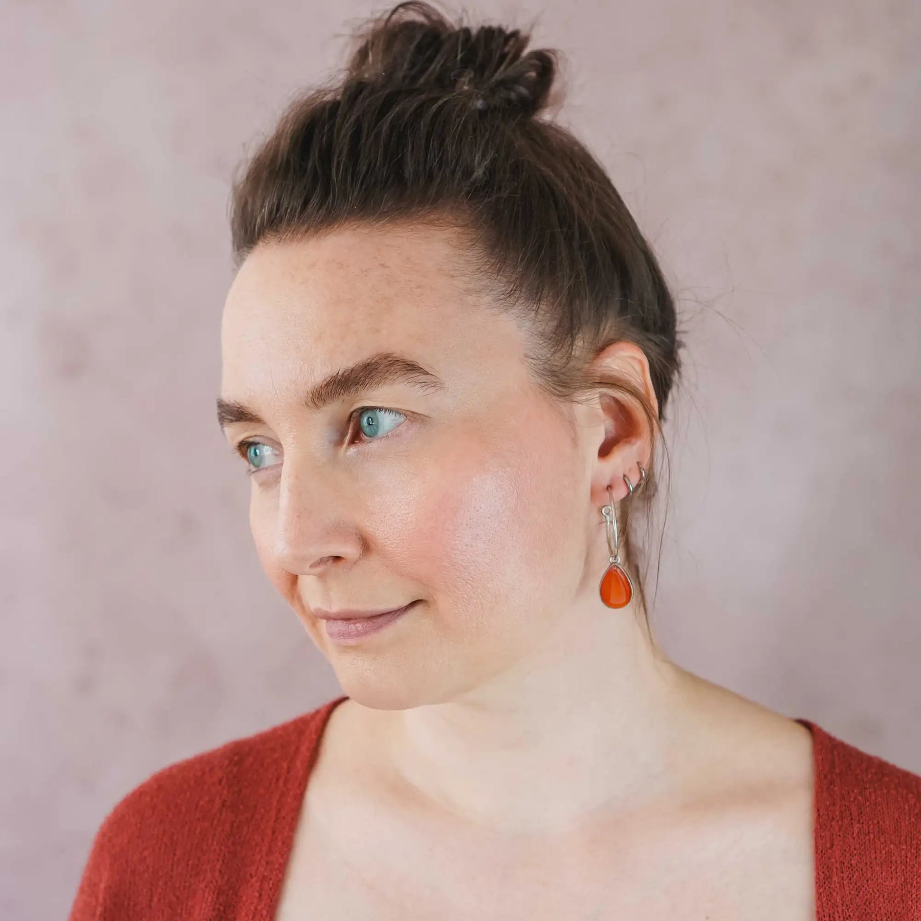 Wenn du Silber Ohrringe mit Steinen suchst, die Charakter haben, Bedeutung tragen und dich durch deinen Alltag begleiten - dann sind diese Karneol Schmuck Creolen genau für dich gemacht.