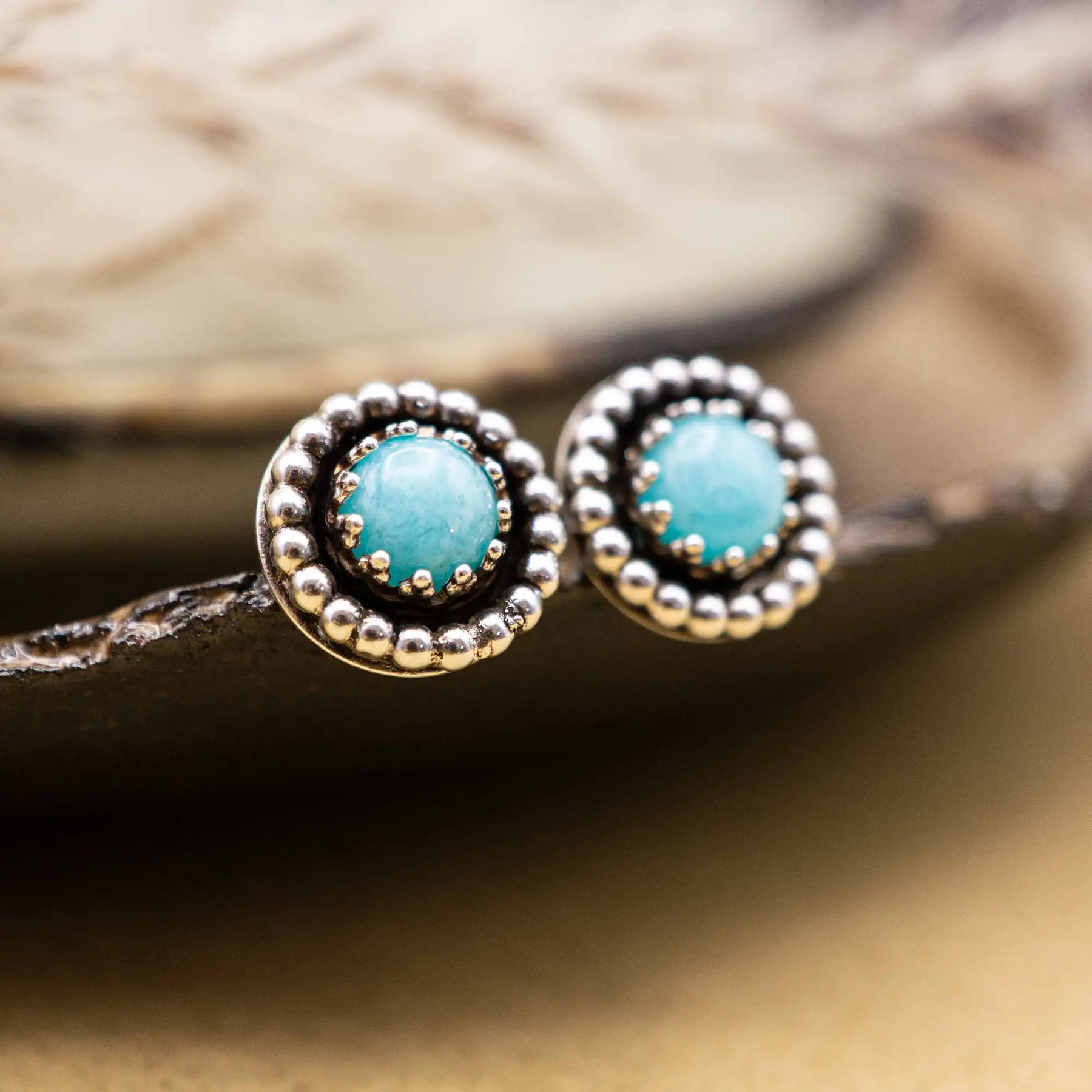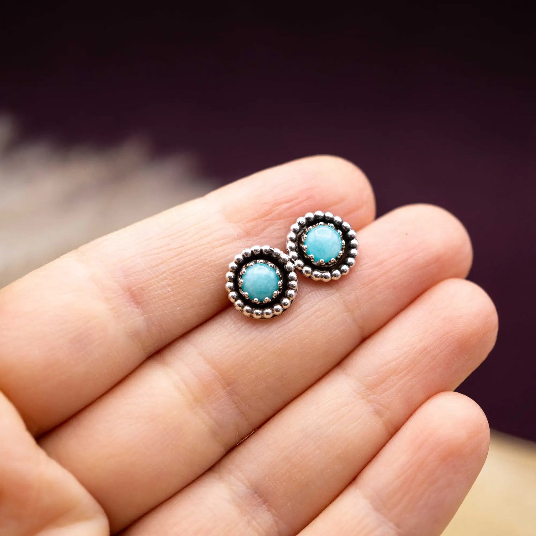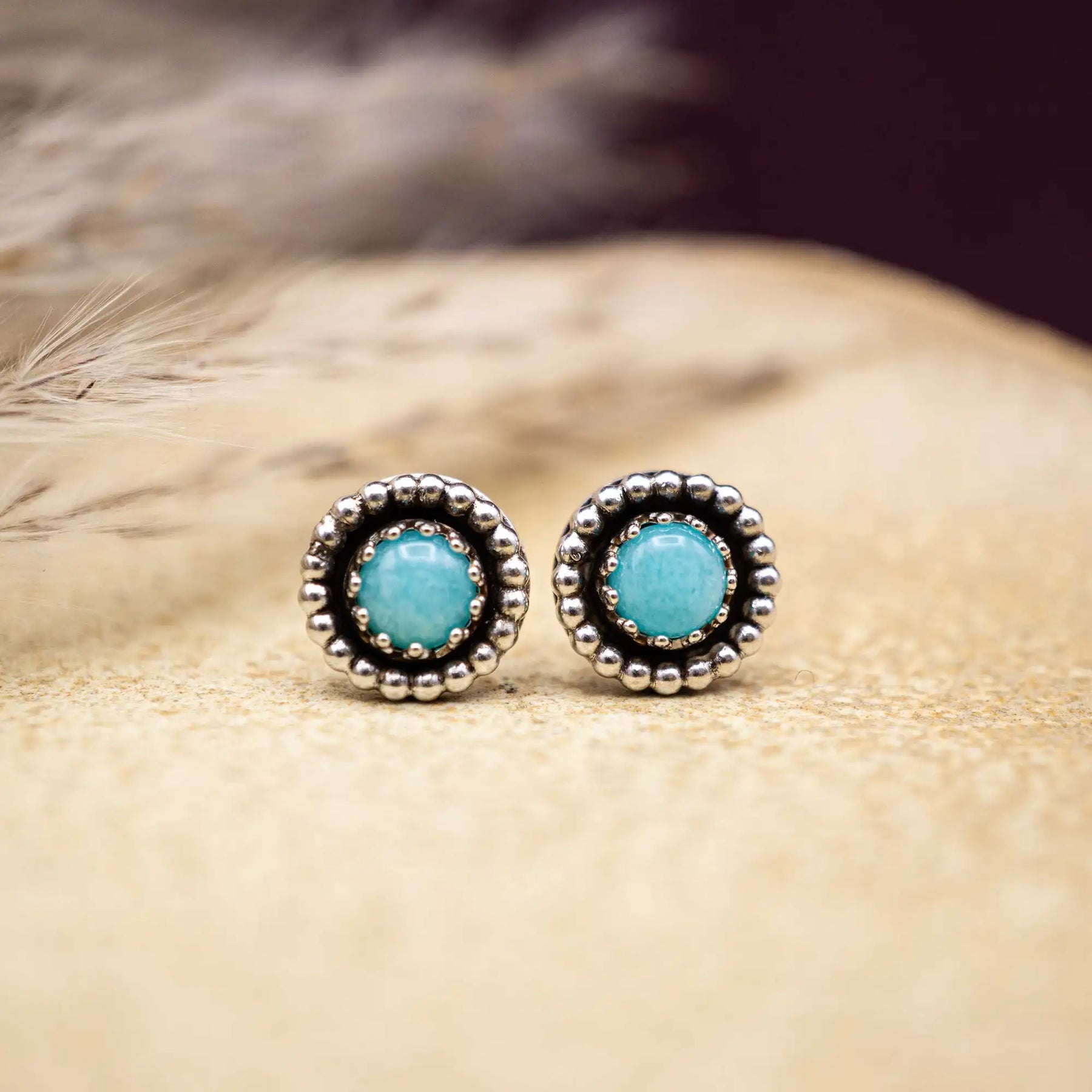 Amazonit Ohrstecker, die dich im Alltag begleiten - unaufgeregt stark, mit ihren feinen Perlendetails.