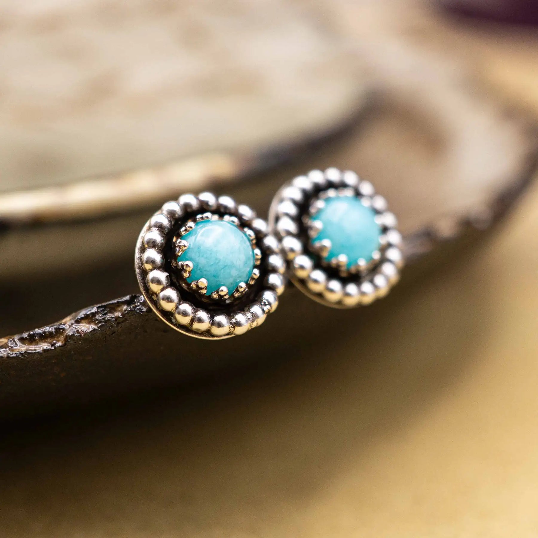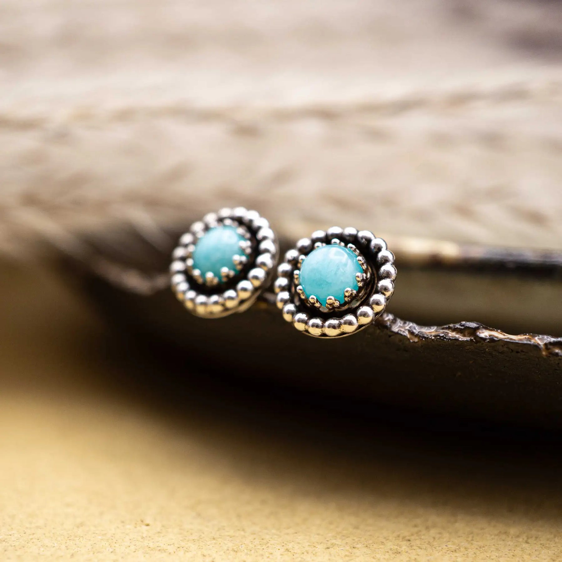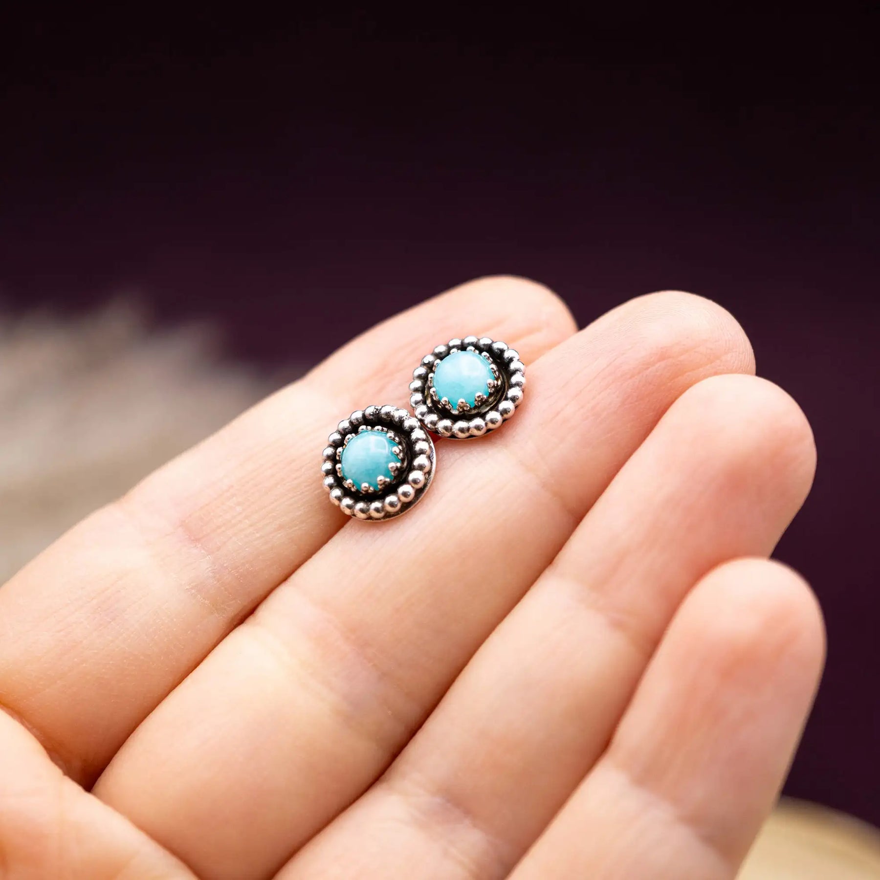 Amazonit Ohrstecker, die dich im Alltag begleiten - unaufgeregt stark, mit ihren feinen Perlendetails.