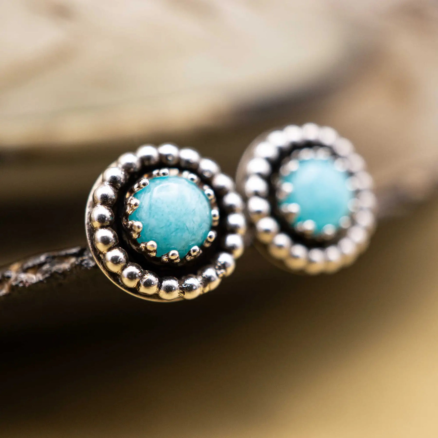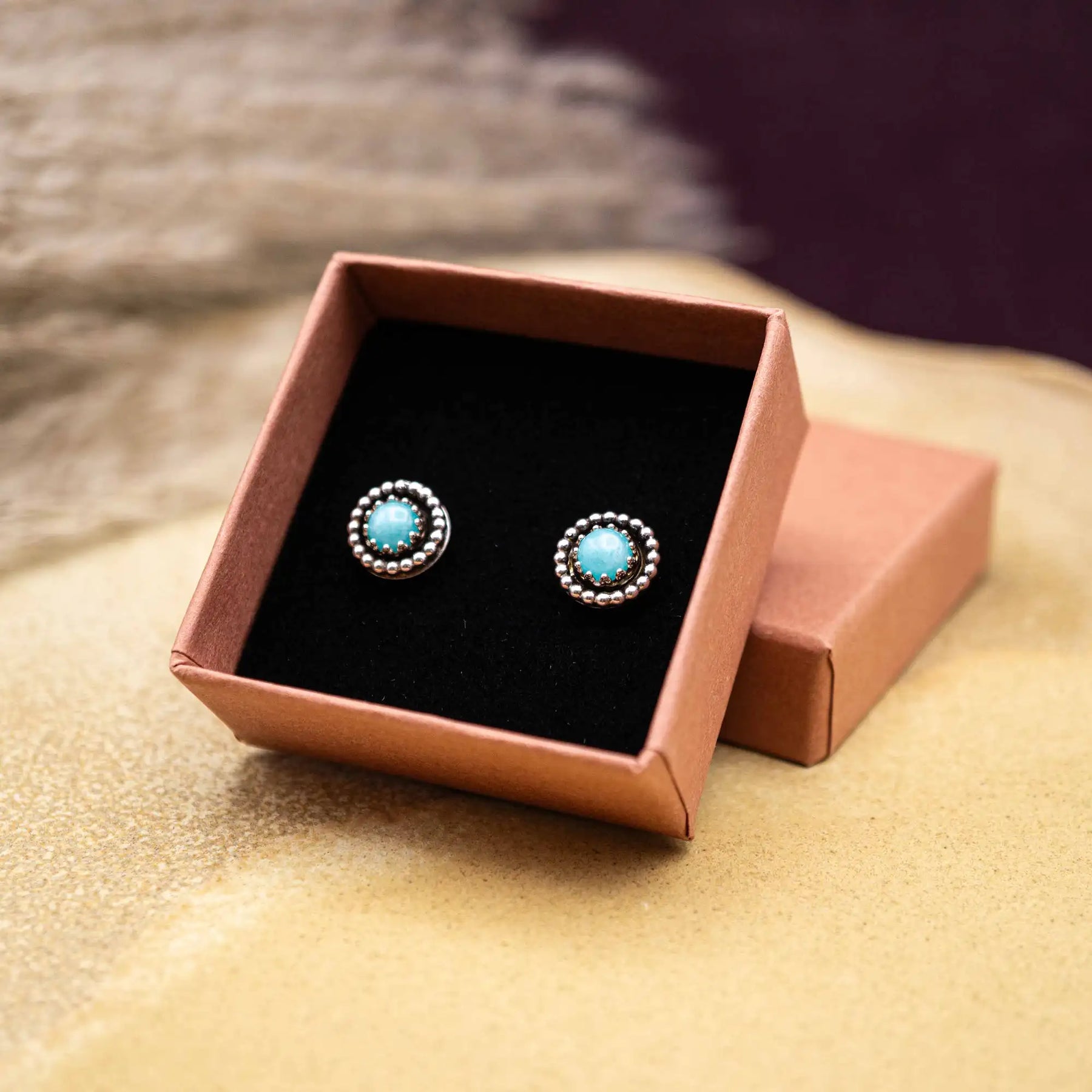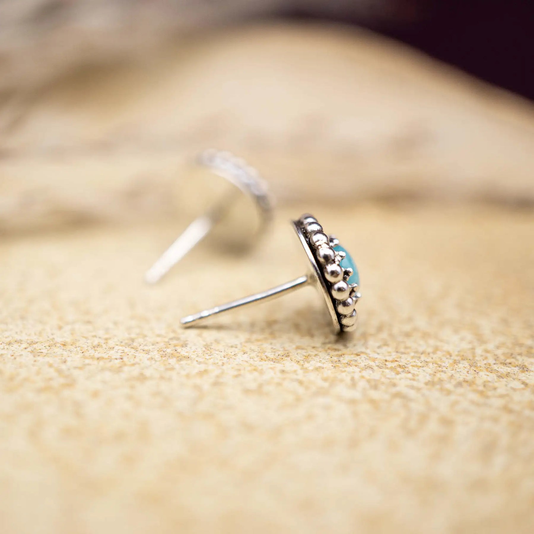 Die kleinen Ohrstecker aus Silber mit ihrem sanften Türkiston bringen dir Präsenz - eine ruhige Selbstverständlichkeit.
