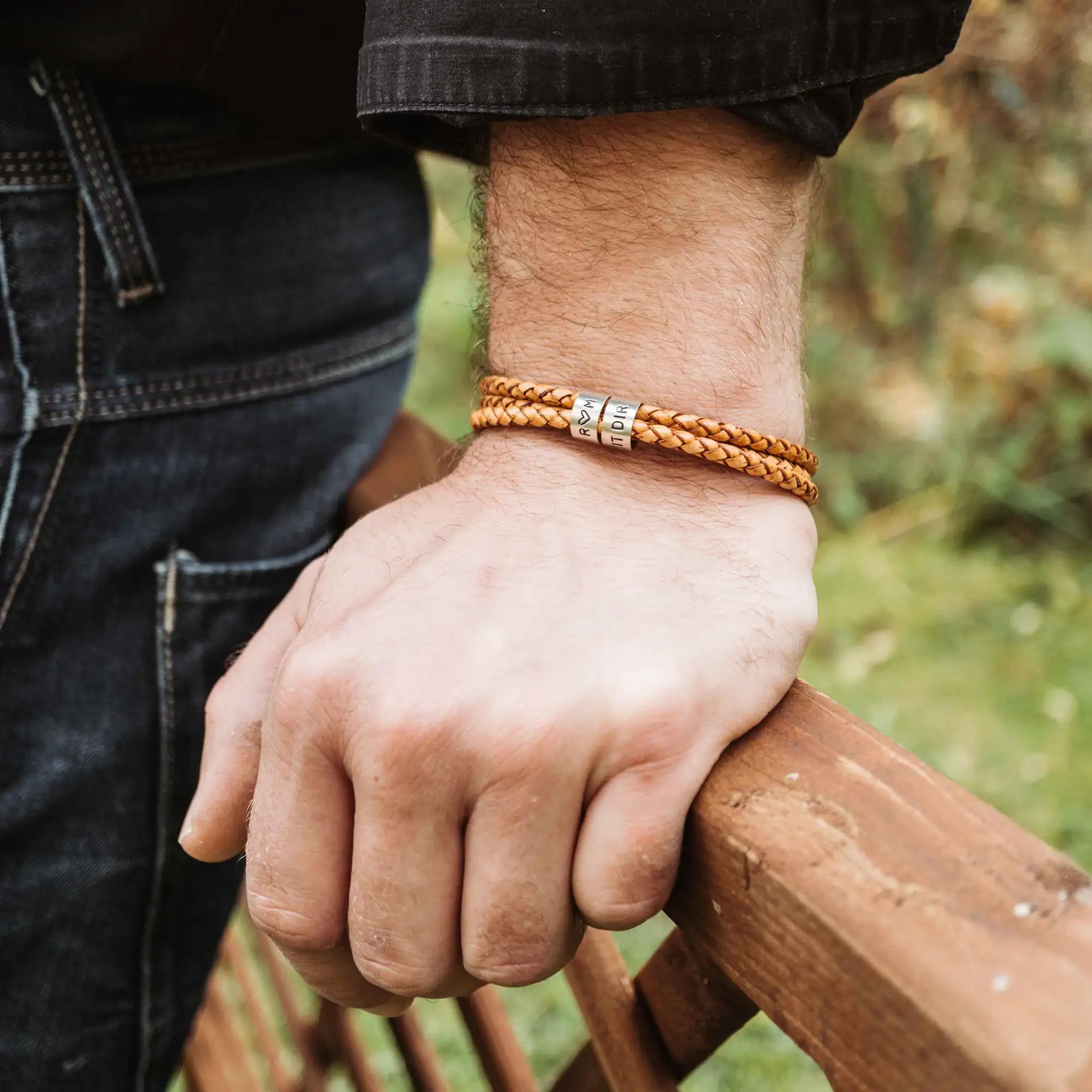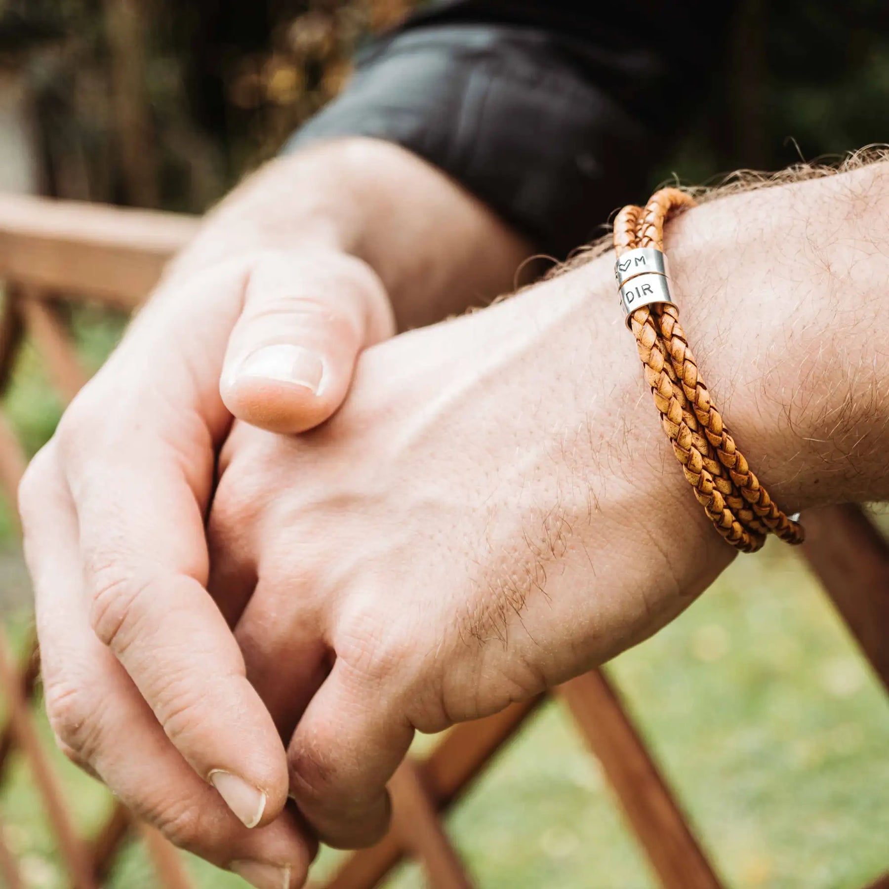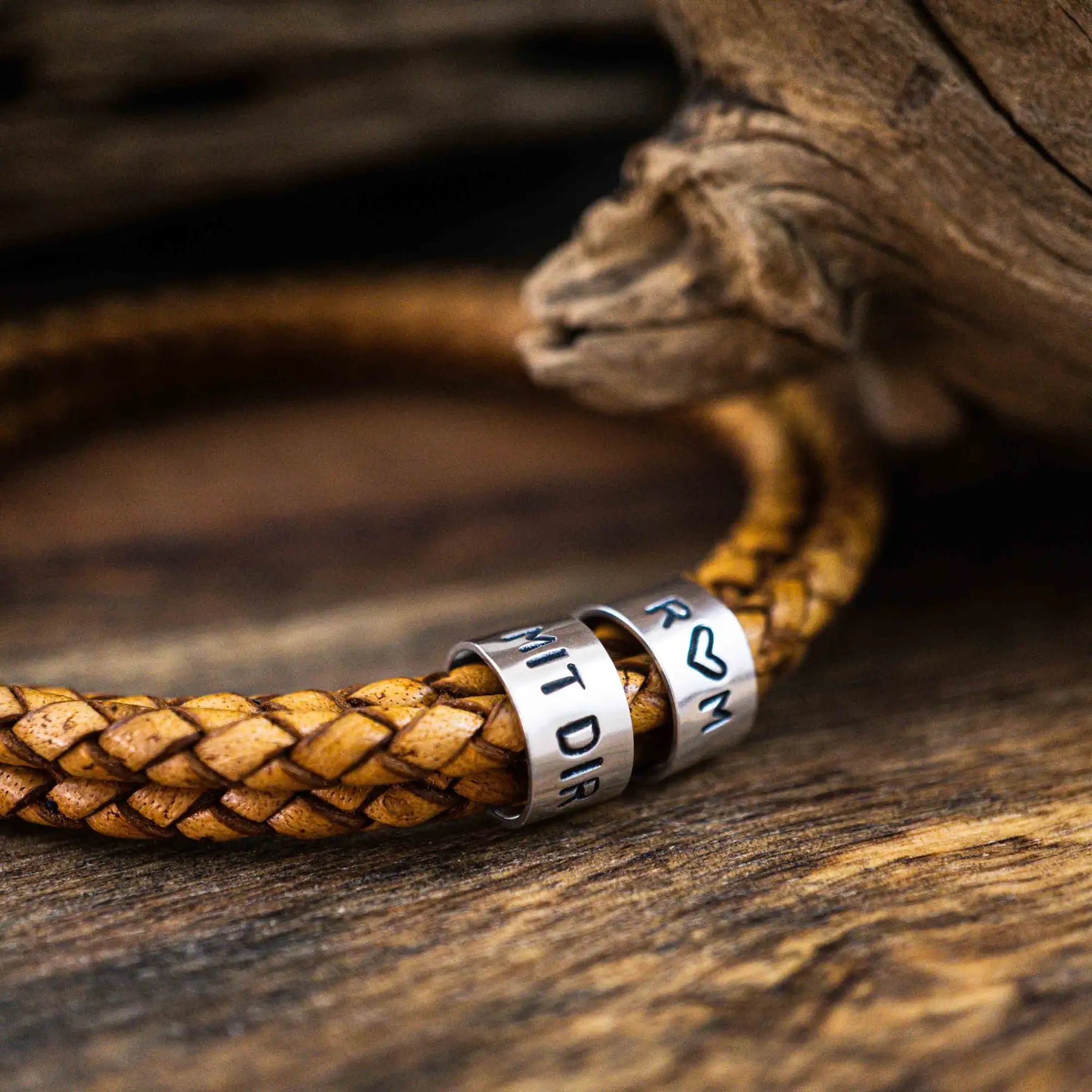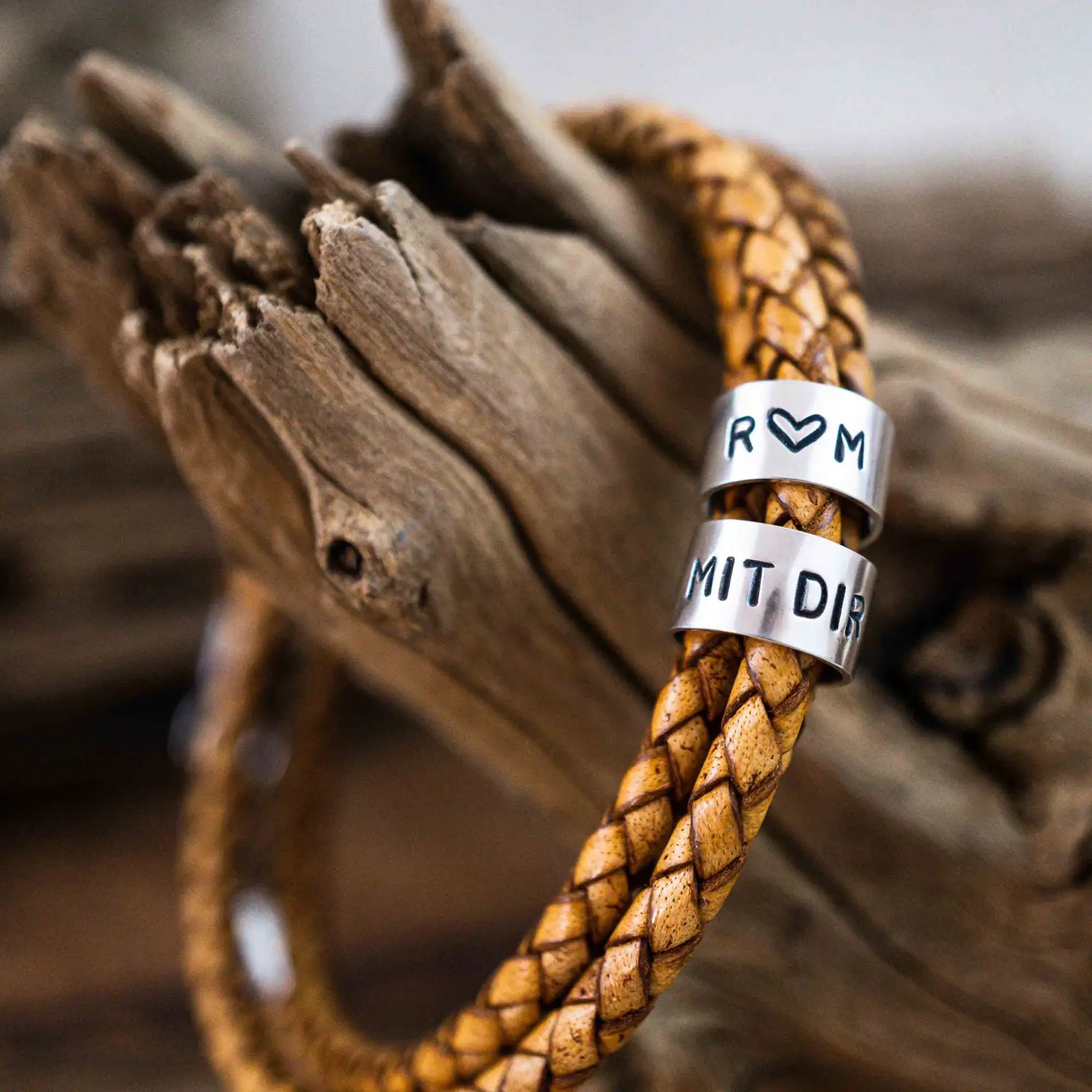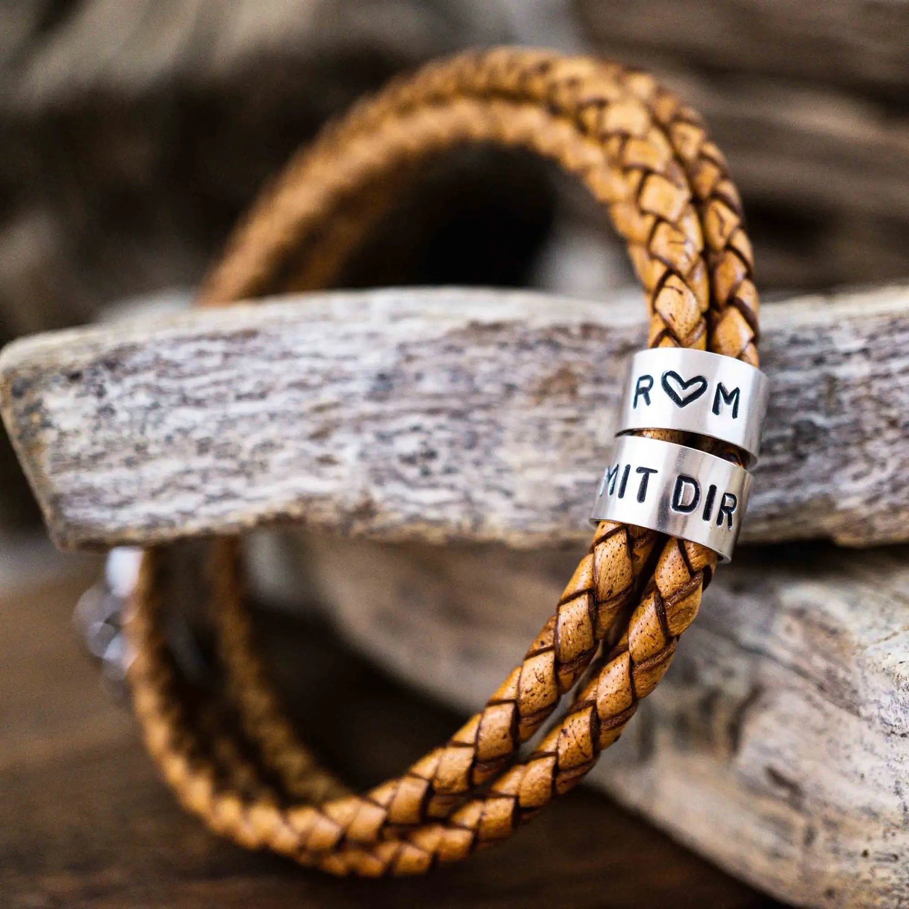 Ob die Namen deiner Liebsten, deiner Haustiere oder einfach ein Spruch, der dich inspiriert - alles findet Platz auf dem gravierten Wickelarmband aus Leder.