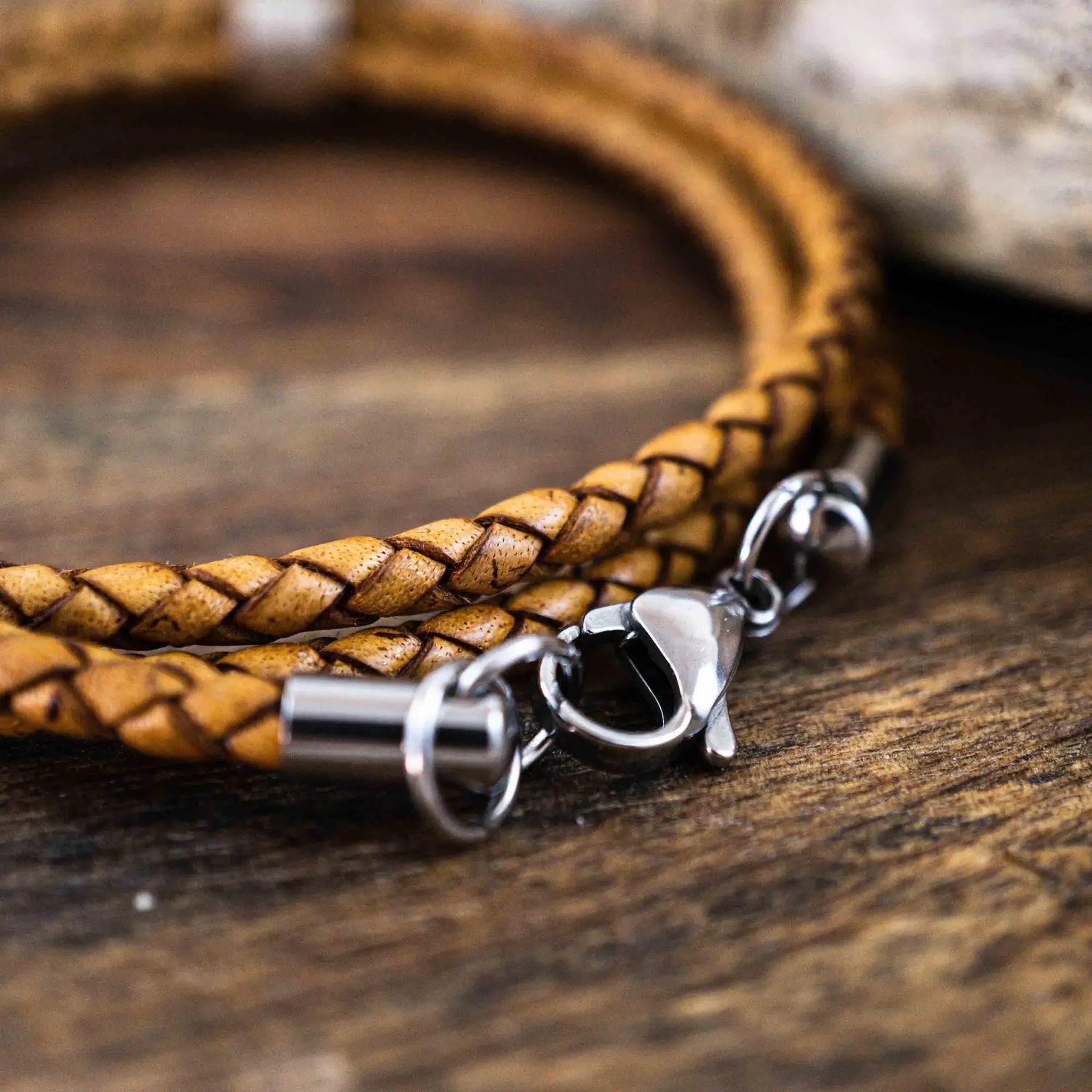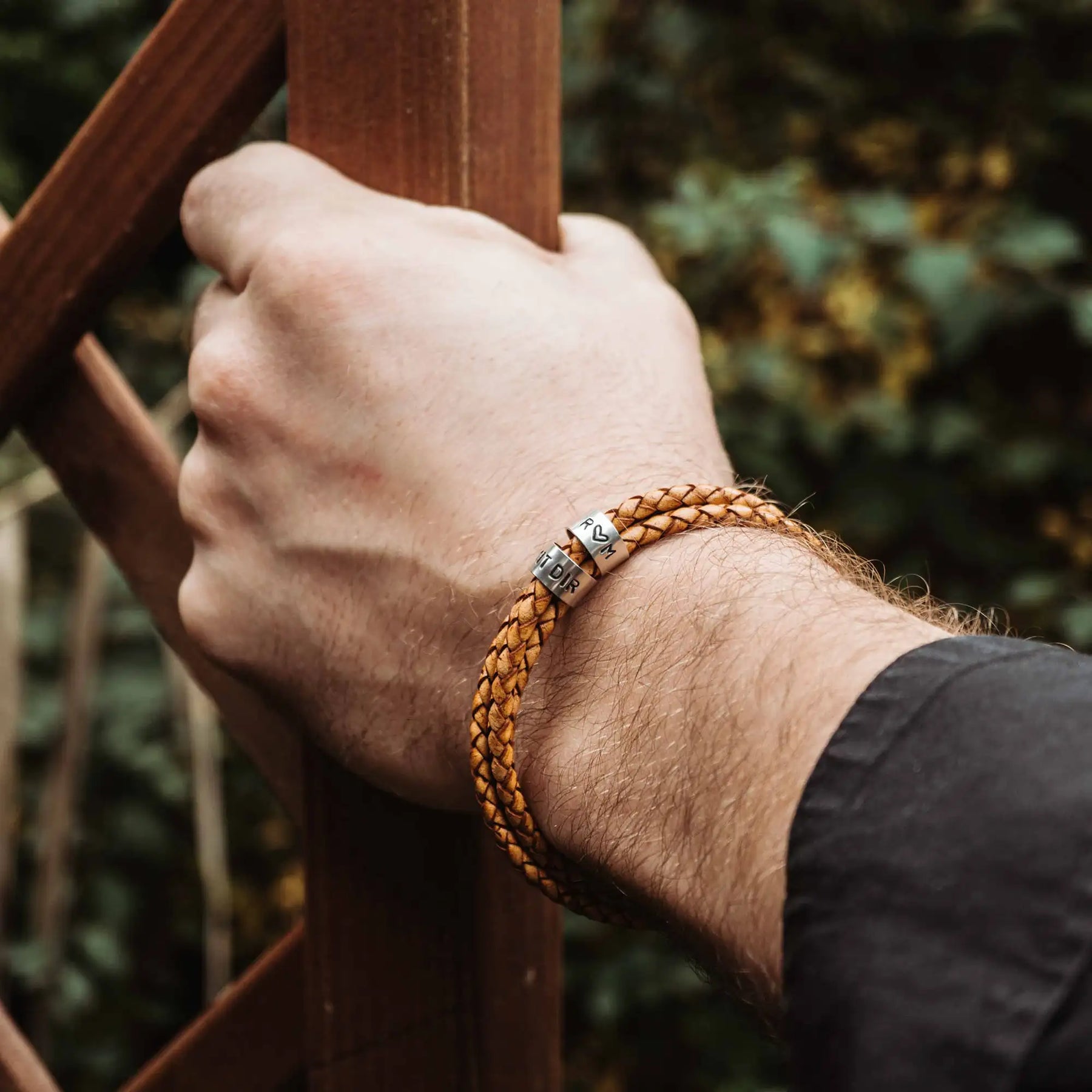 Lederarmband in Senfgelbem Sandbraun mit Gravur auf Echtsilber