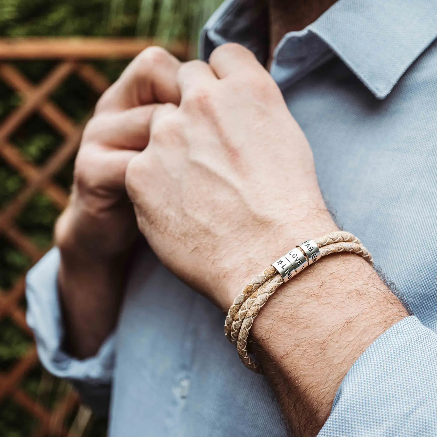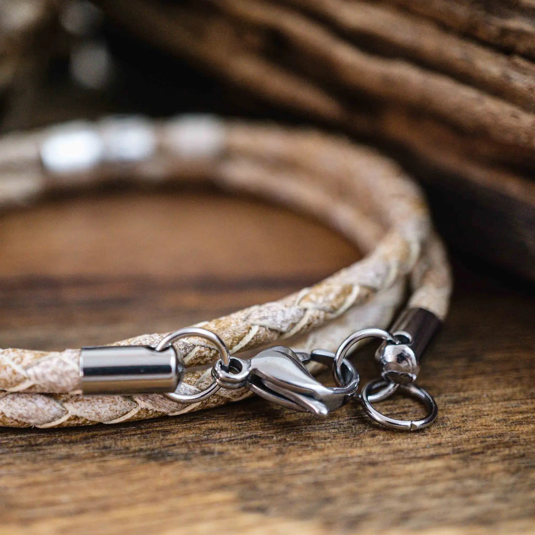 Ein weiches, beige-weiß meliertes Lederarmband mit Namensgravur auf Echtsilber!