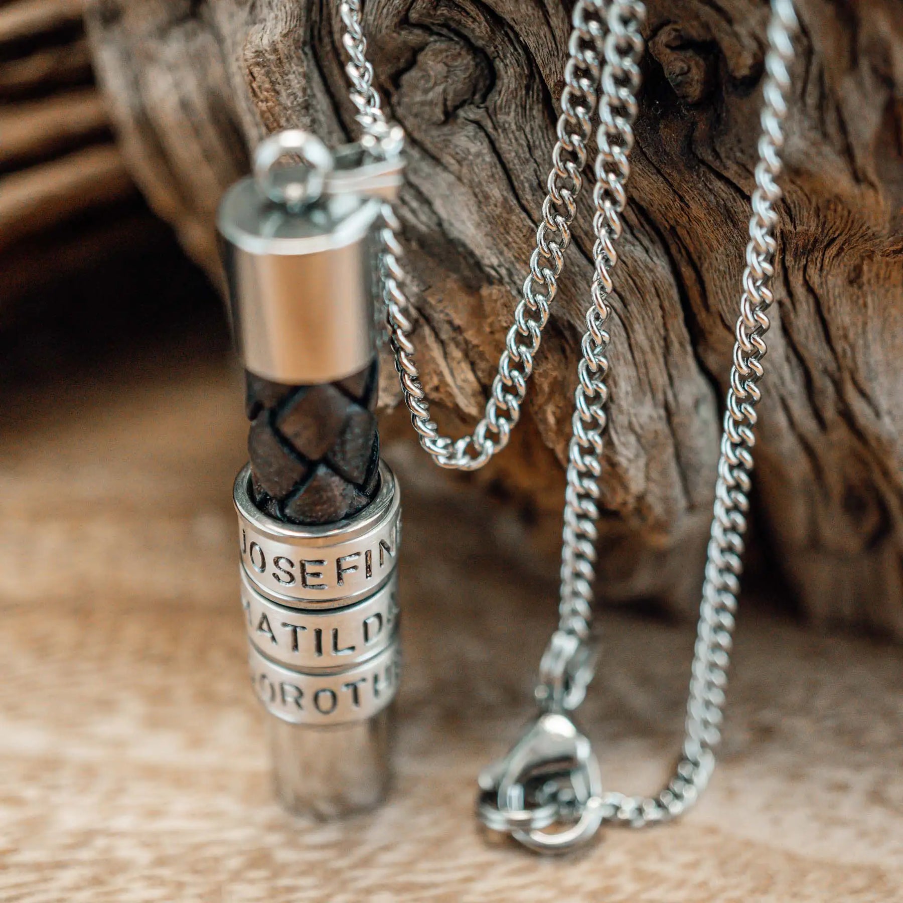 Diese Halskette ist nicht nur ein perfektes Geschenk für Männer, die ihre Familie gern bei sich tragen möchten, sondern passt auch hervorragend zu jedem Outfit.