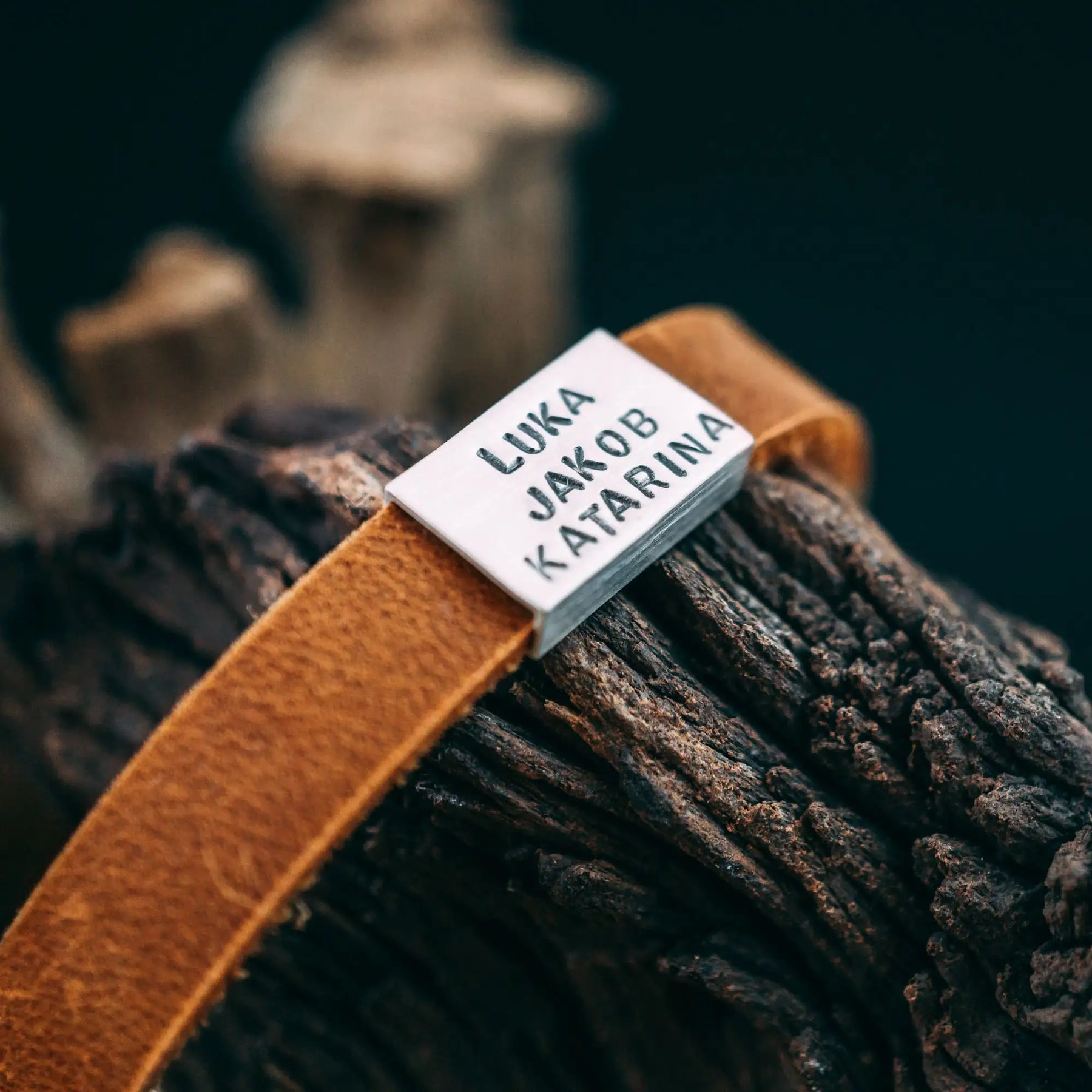 Jeder Name und jedes Wort (max 8 Buchstaben pro Zeile, inklusive Leerzeichen und maximal 3 Zeilen) wird von mir von Hand in das Echtsilber geschlagen, dadurch entsteht ein handgemachter, rustikaler Look. Im Anschluss wird die Perle geformt, gehärtet, patiniert, geschliffen und matt poliert. Dein Lederband wird zurechtgeschnitten, mit einem Verschluss aus solidem Edelstahl versehen und sorgfältig eingepackt.