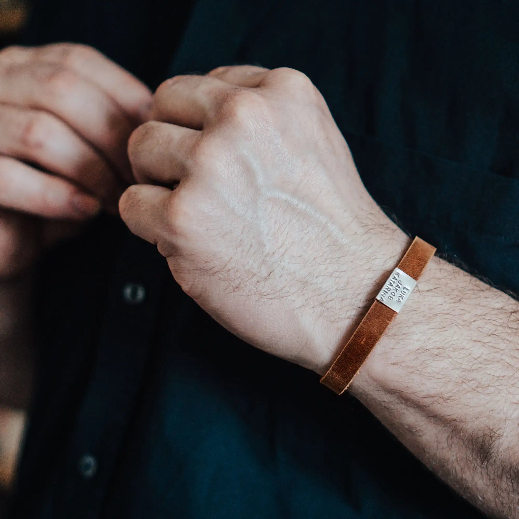 Das bedeutet, mit jedem Kratzer und jeder Biegung kommt nuancenhaft das hellere Unterleder zum Vorschein, so verändert dieses Armband ständig sein Aussehen und wirkt mit der Zeit immer lebendiger und kerniger.