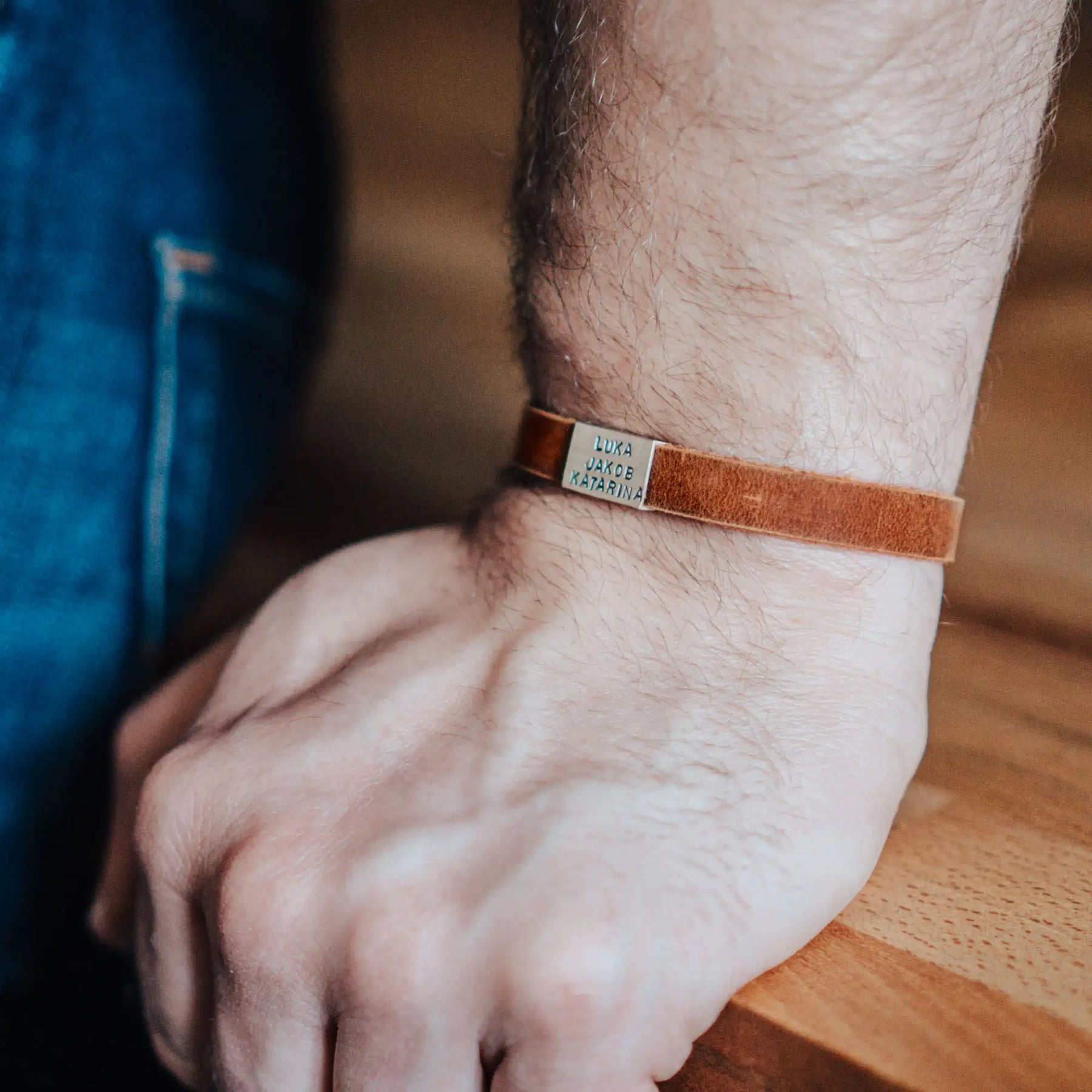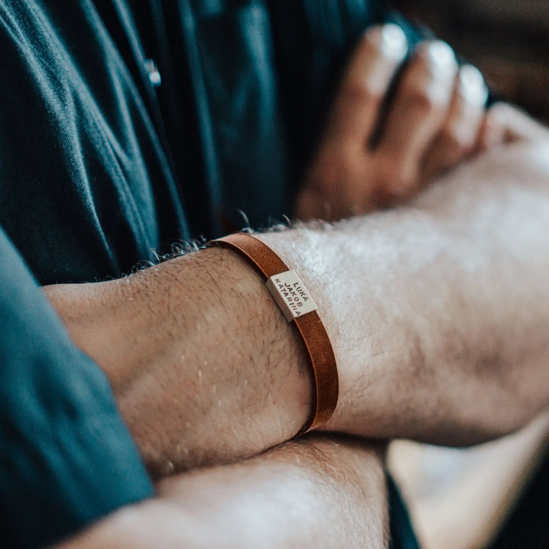 So sitzt es passgenau oder lässig am Handgelenk und die Echtsilberperle mit Gravur schmiegt sich als stilvoller Akzent um das Band.