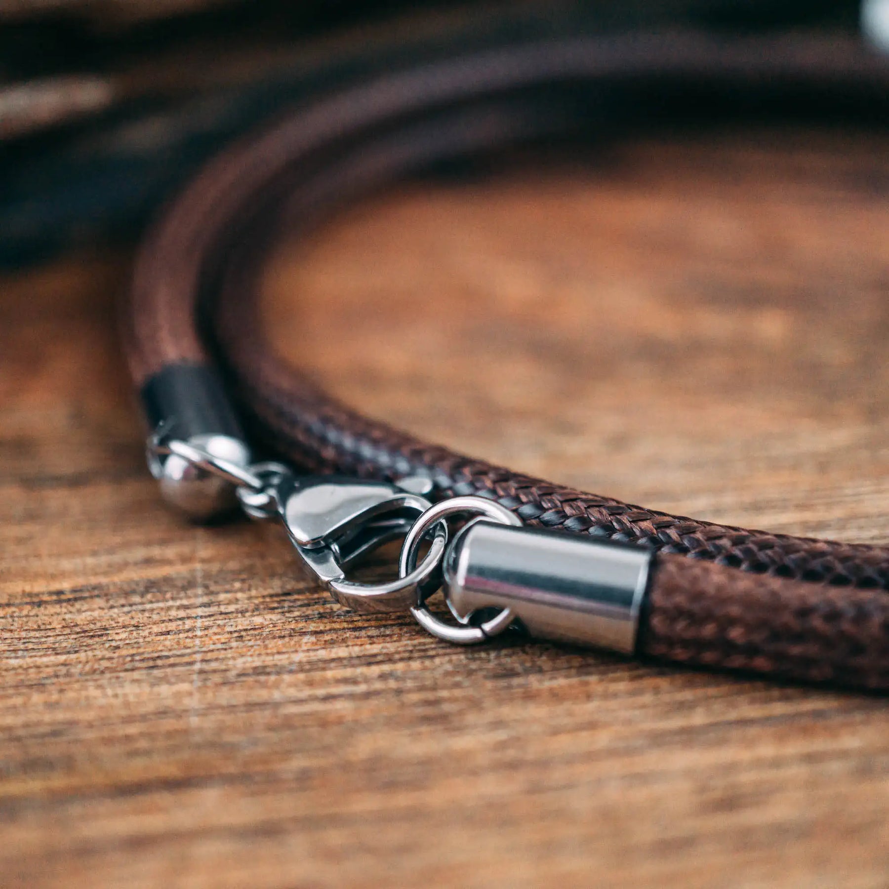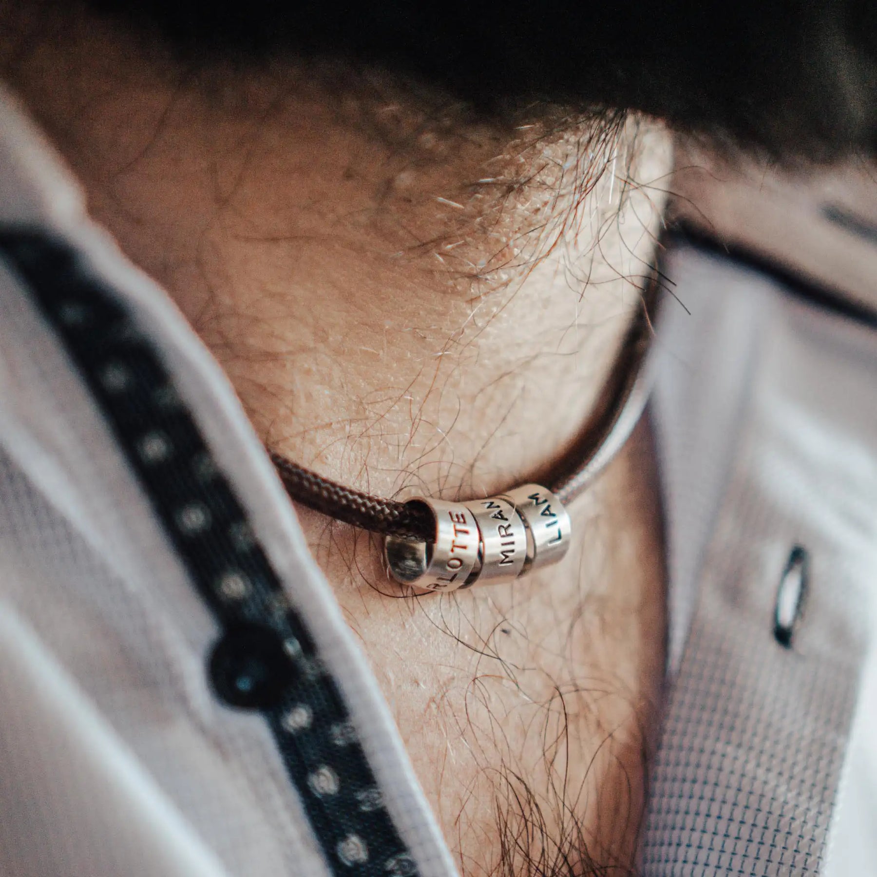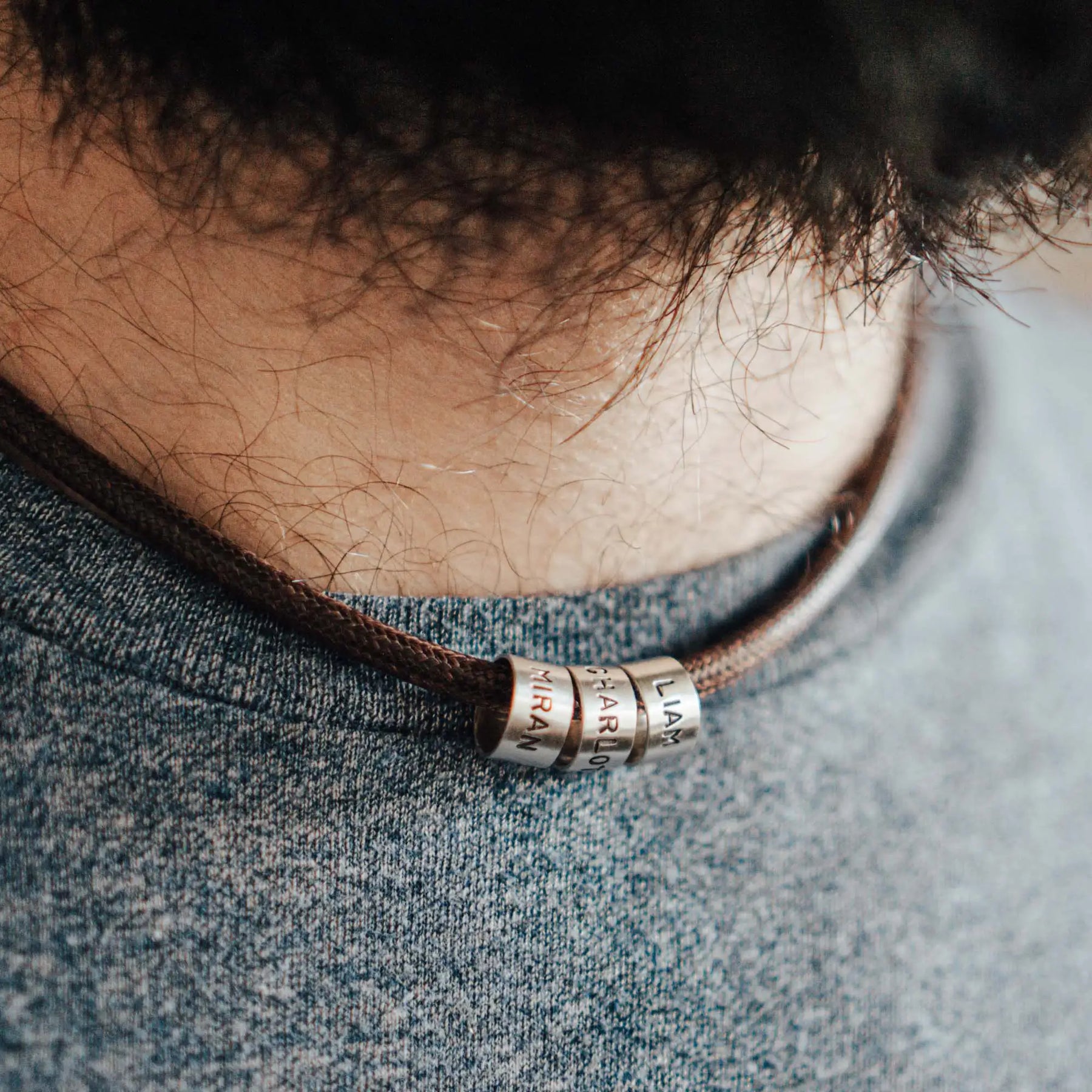 Vegane Halskette für Männer in Braun mit Gravur auf Echtsilber