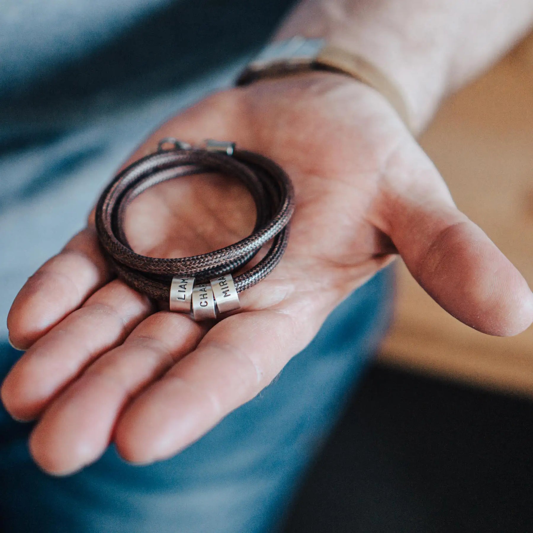 Sie sitzt passgenau, lässig und elegant und die Echtsilberperlen mit Gravur schmiegen sich als stilvoller Akzent um das Band.