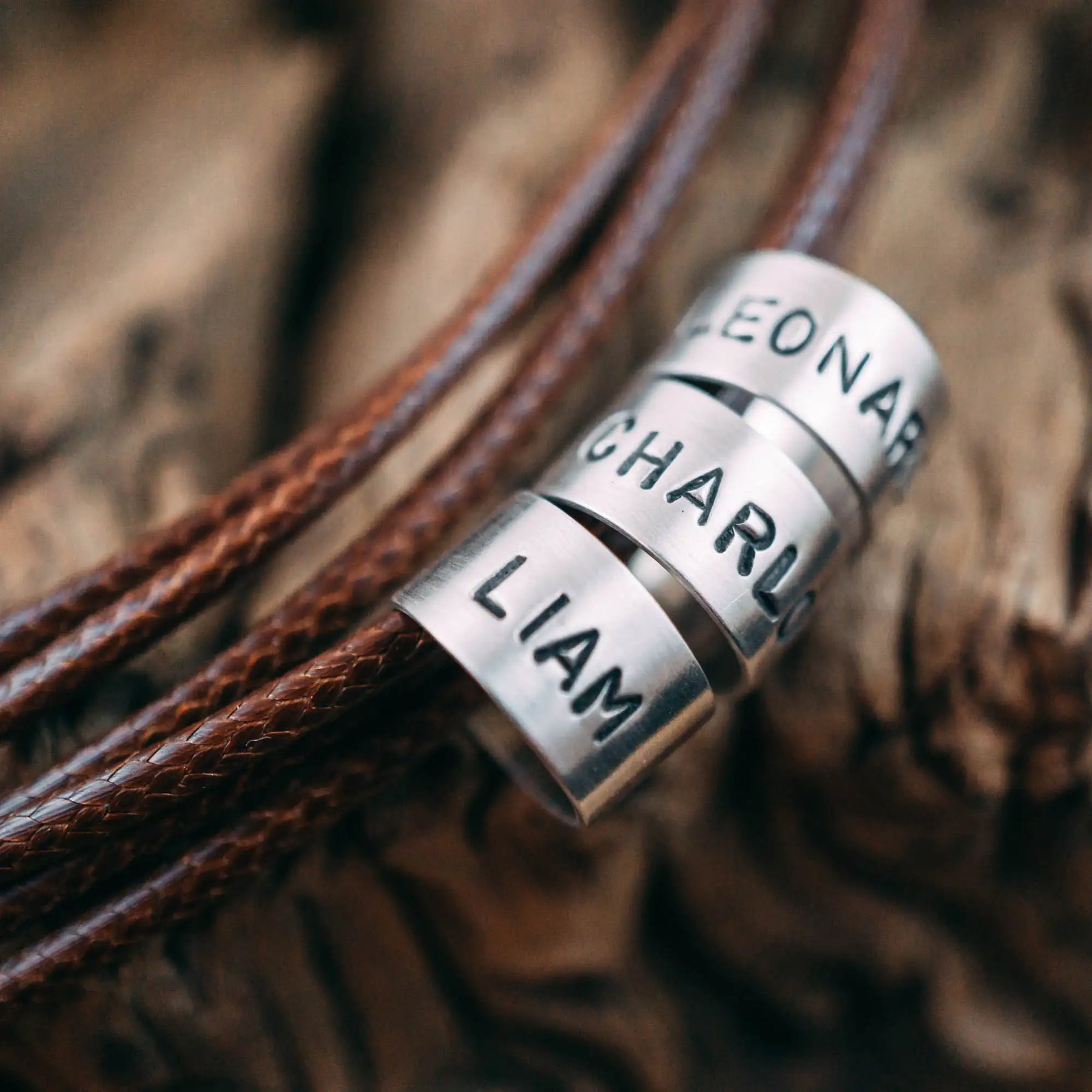 Eine Namenskette in mehrstrangigem, rustikalem Antikbraun, geziert von matt polierten Echtsilberperlen mit den Namen der Liebsten, einem Datum oder Worten, die dir etwas bedeuten!