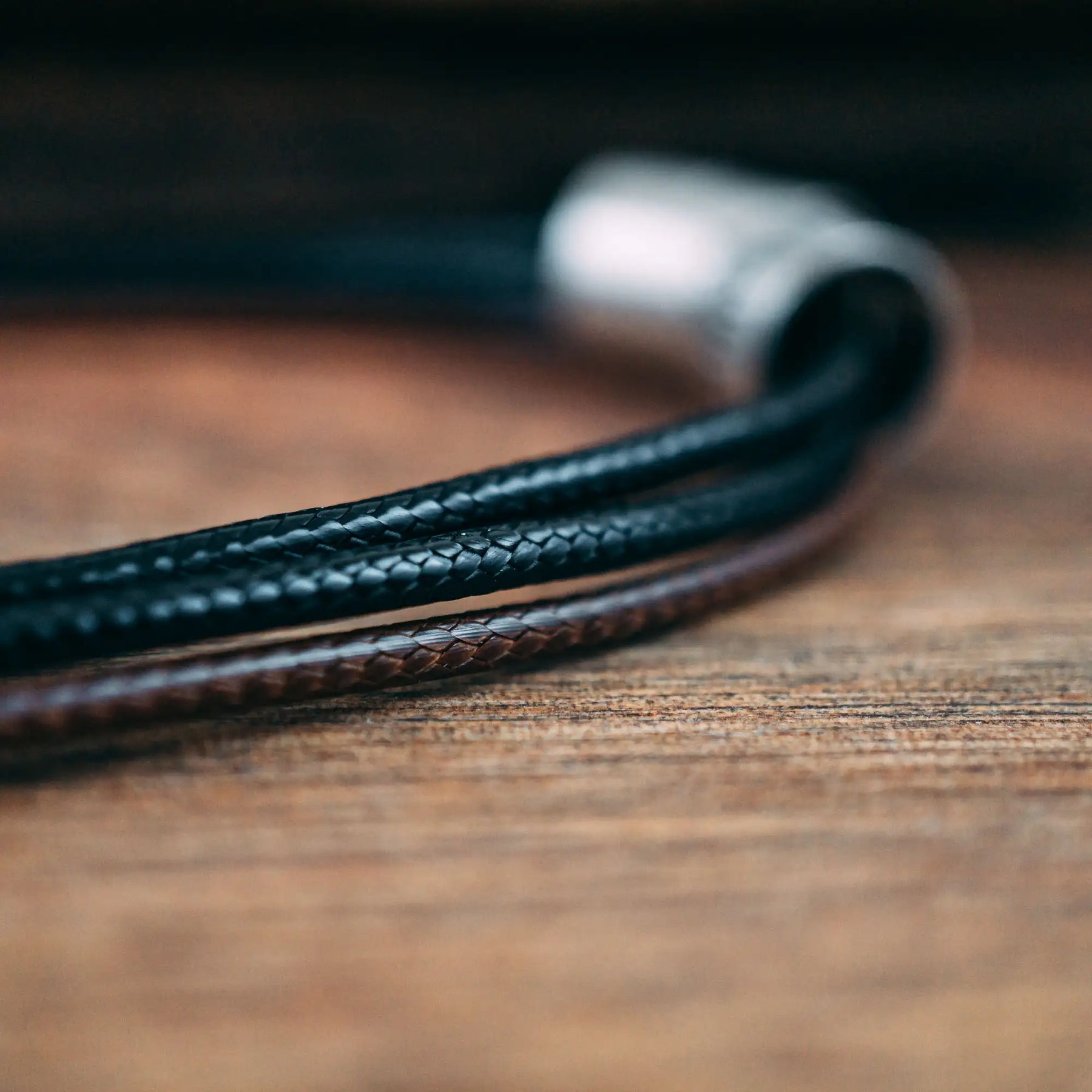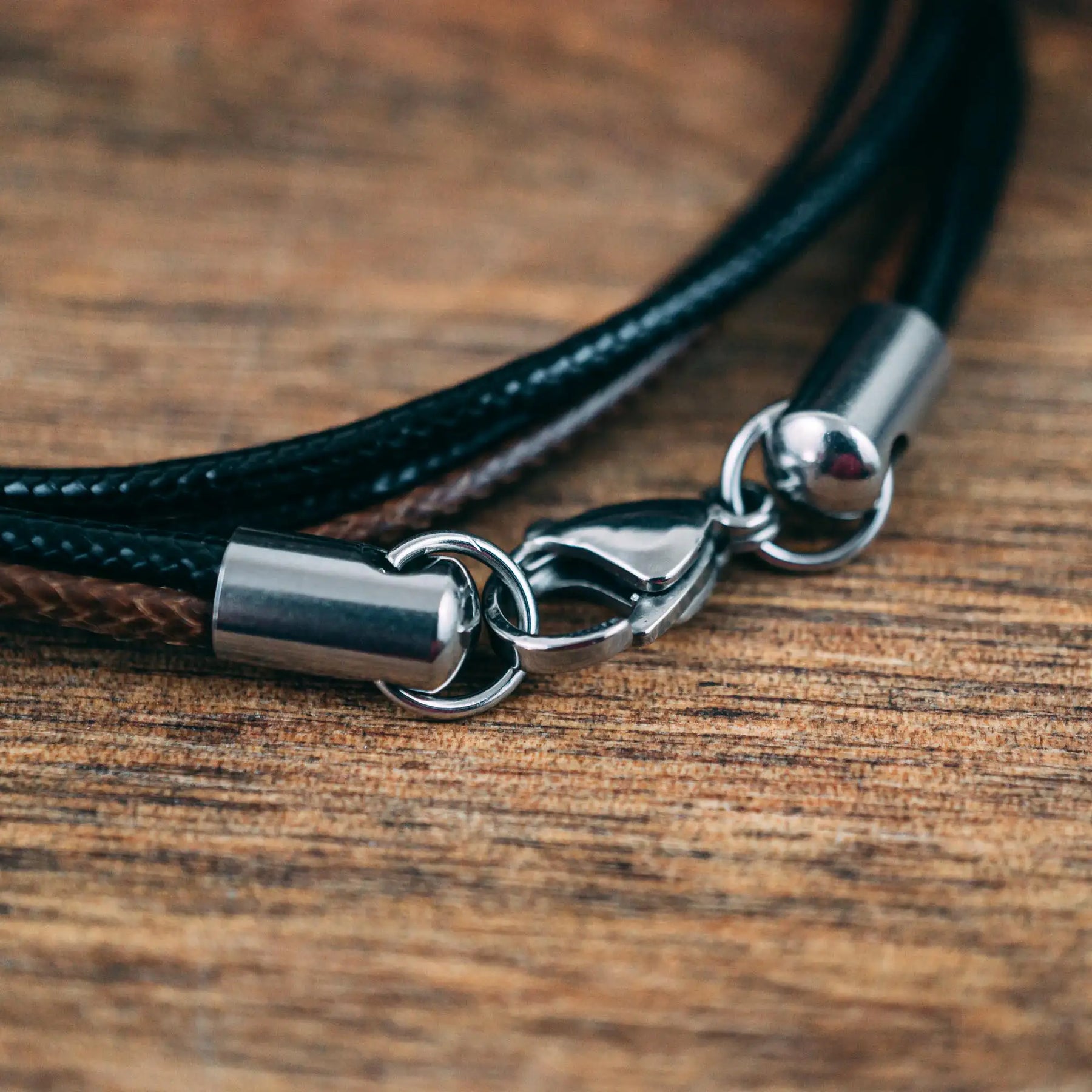 Vegane Halskette in Braun-Schwarz mit Gravur auf Echtsilber