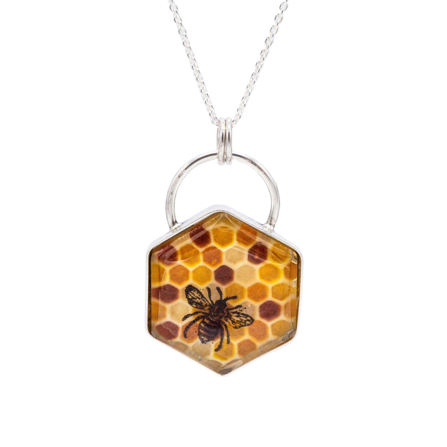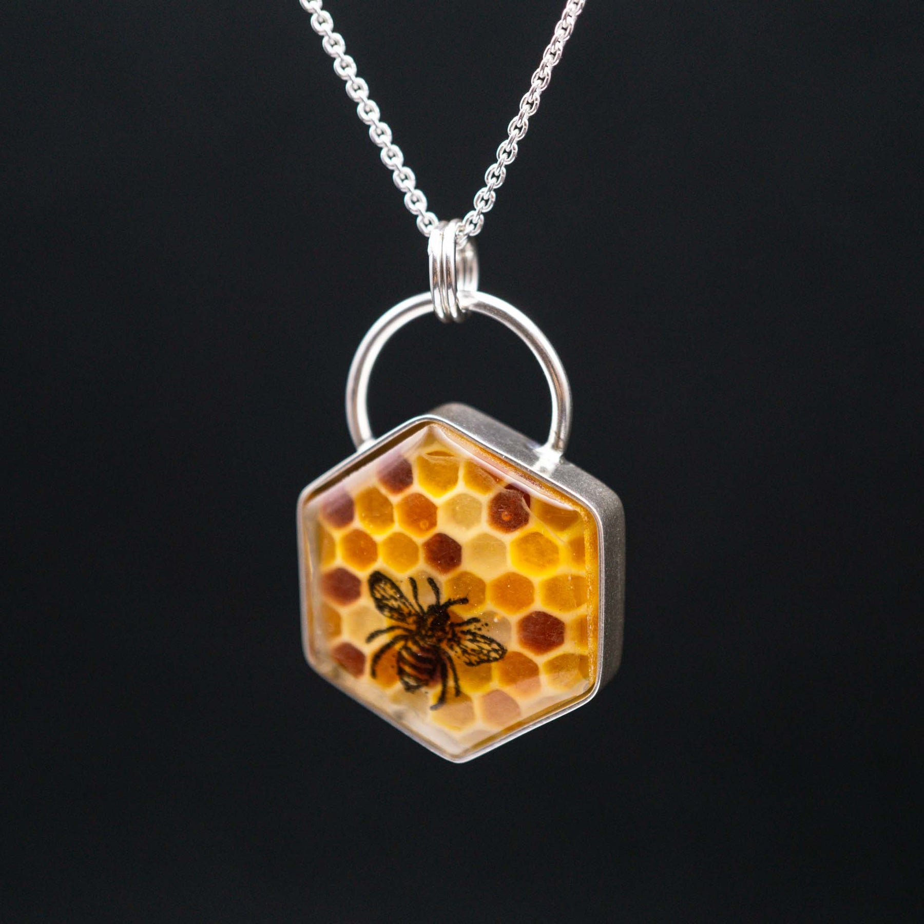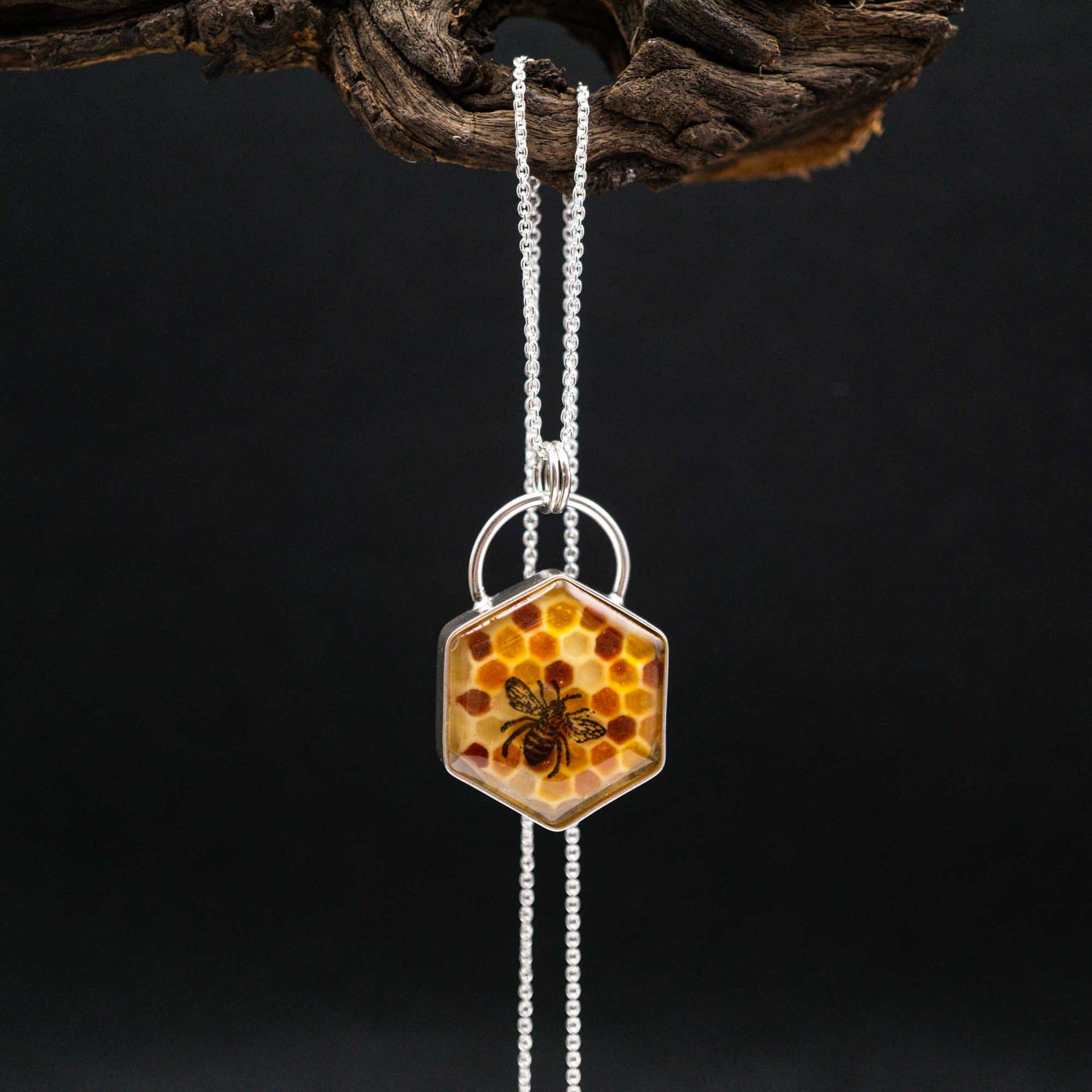 Gefüllte Honigwaben Bienen Halskette aus Echtsilber
