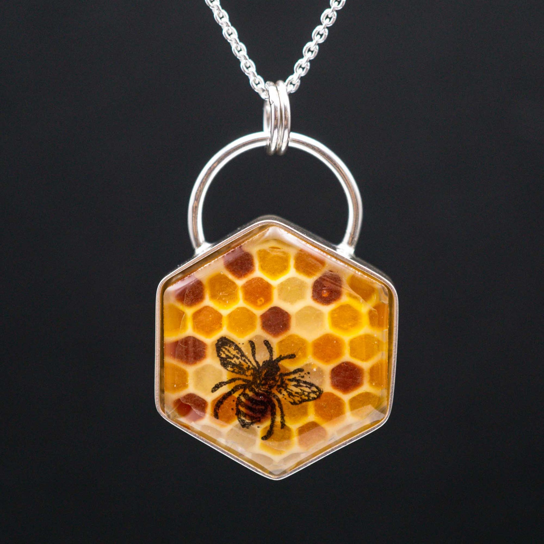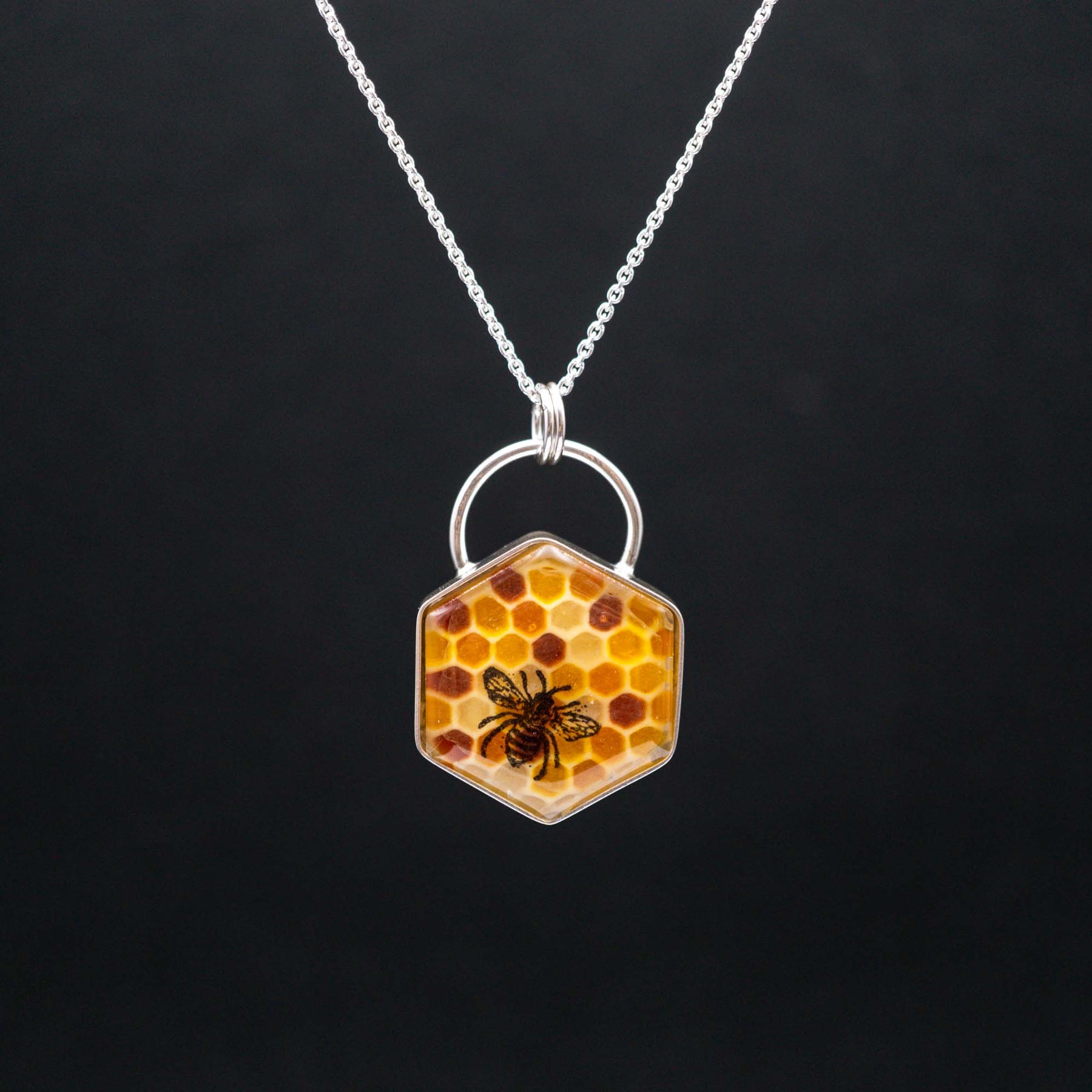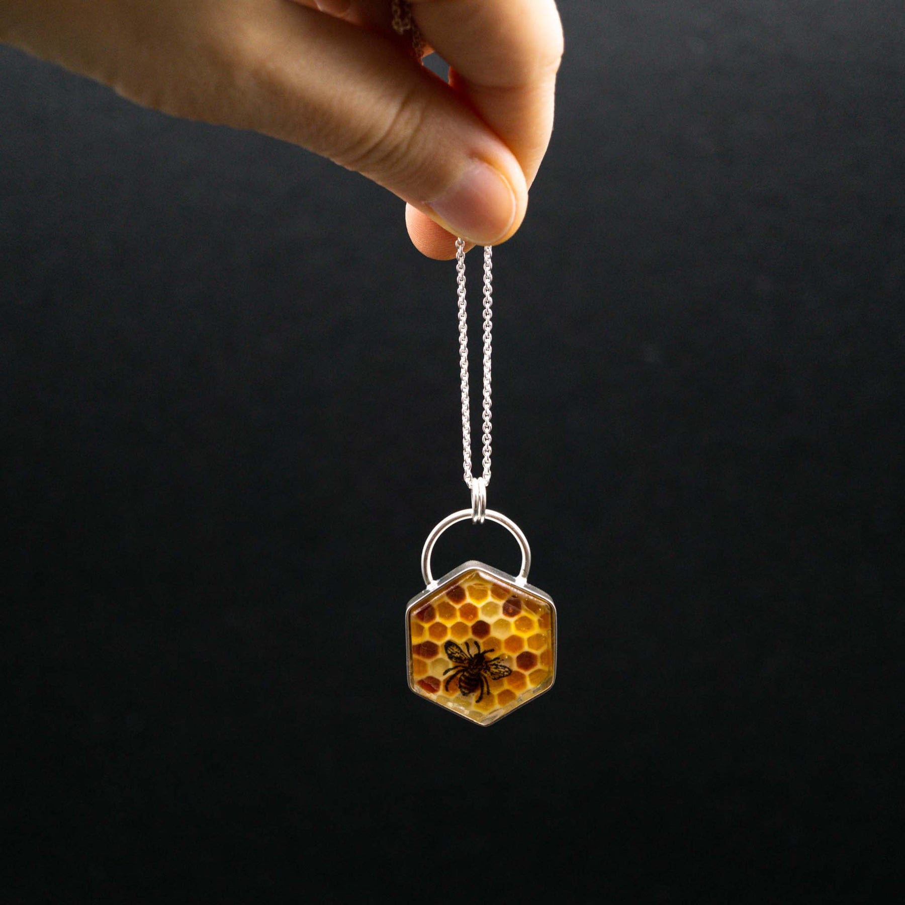 Gefüllte Honigwaben Bienen Halskette aus Echtsilber