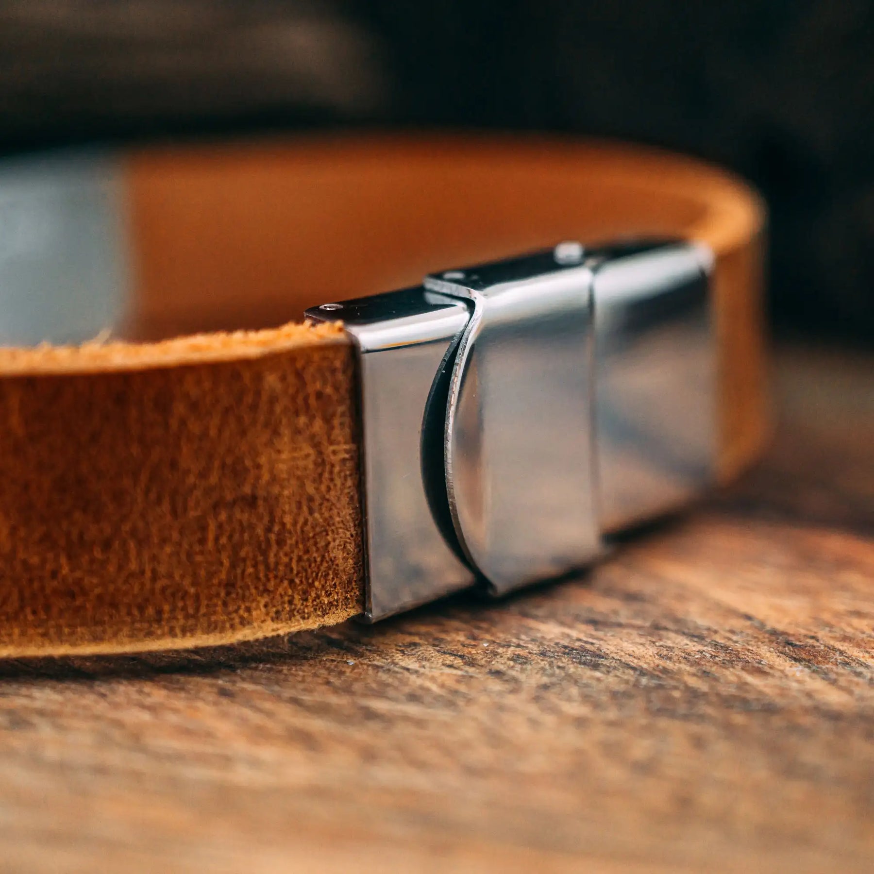 This means that with every scratch and every bend, the lighter leather underneath becomes visible in nuances, so this bracelet constantly changes its appearance and appears more and more lively and robust over time.